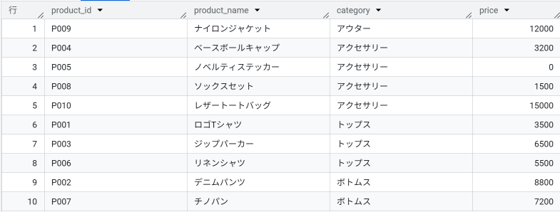 【使用するテーブル②:商品テーブル(products)】